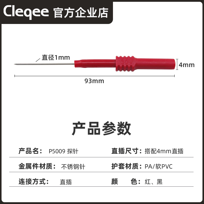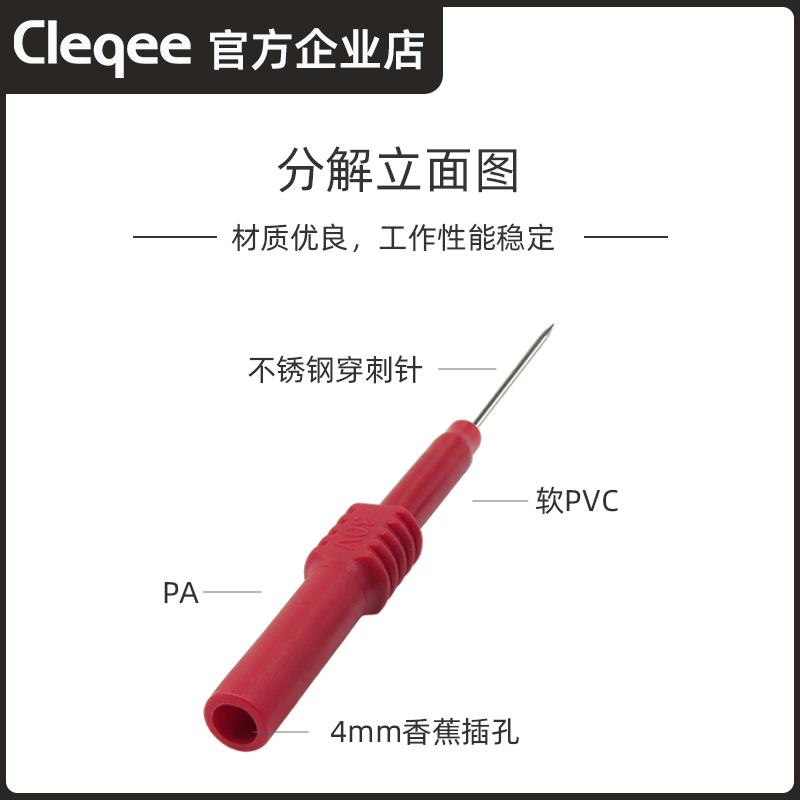 Cleqee flexible test probe tail of 4mm banana plug seat can be picked up by car repair puncture needle
