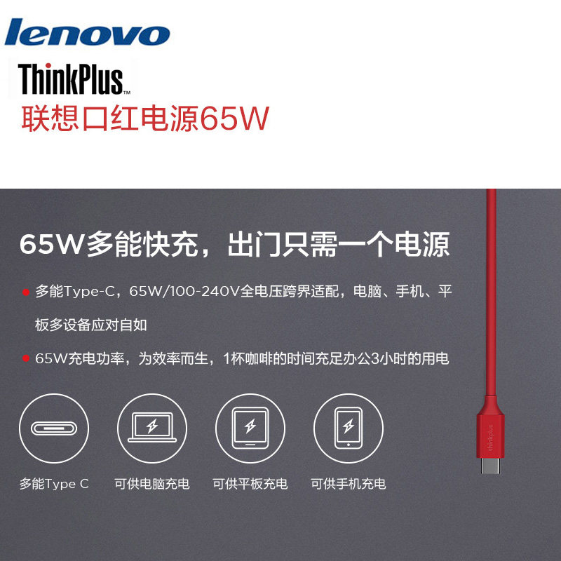 Lenovo gallium nitride mouth red X1 X1 X280 T480 T480 65W fast charging notebook computer power square type-c charging