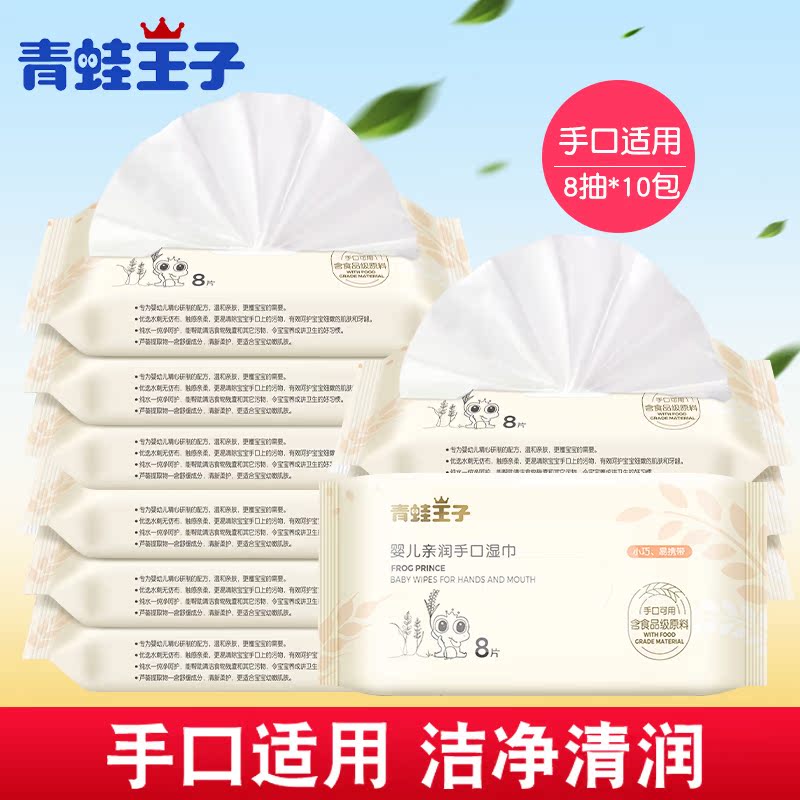 Frog Prince baby hand and mouth wet wipes small packaging wholesale baby newborn children wet wipes mini portable 8 pumping