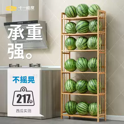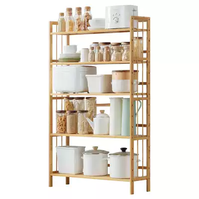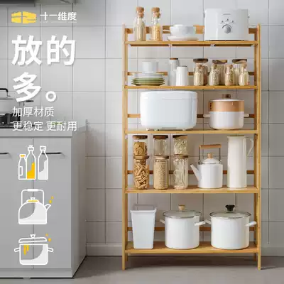 Eleven-dimensional kitchen shelf landing multi-layer bamboo home Bowl pot storage shelf solid wood shelf