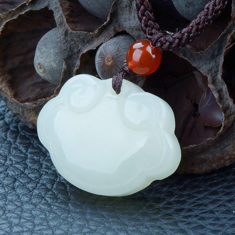 With Tian Yubai jade long life rich and expensive baby lock jade pendant pendant Yuanbao lock Xiaoyu lock baby money