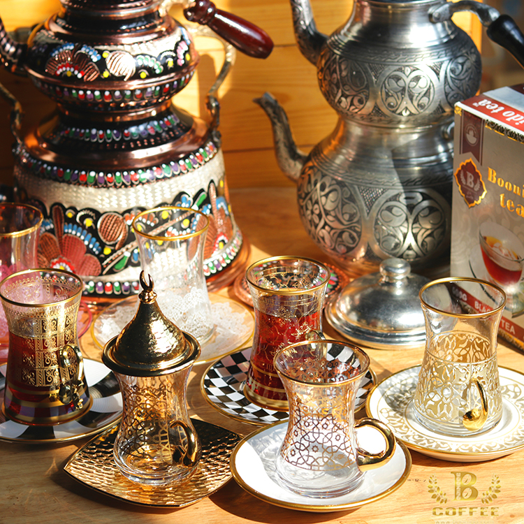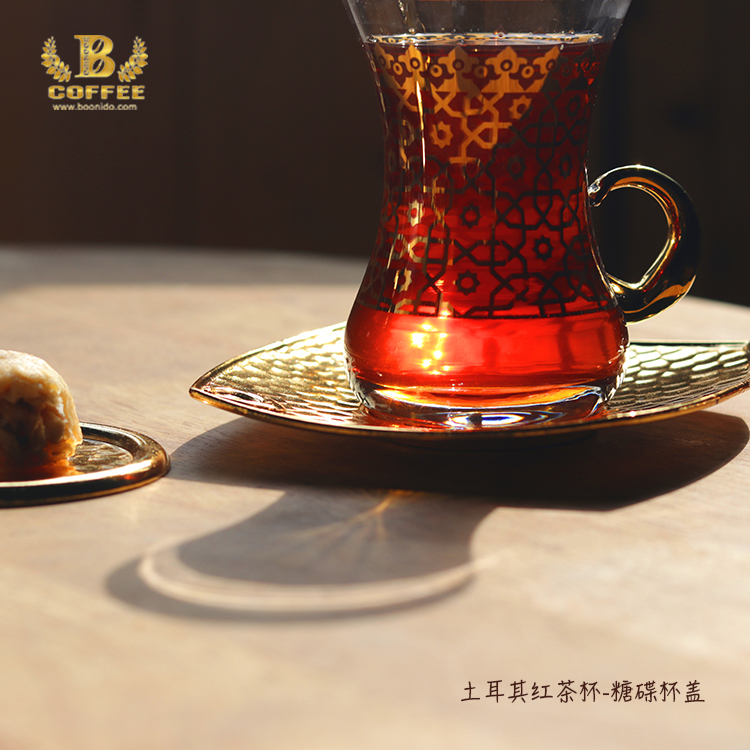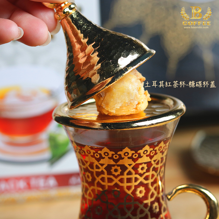 Turkish black tea cup golden with sugar saucer cup European luxury glass cover Ottoman tea set 130ml
