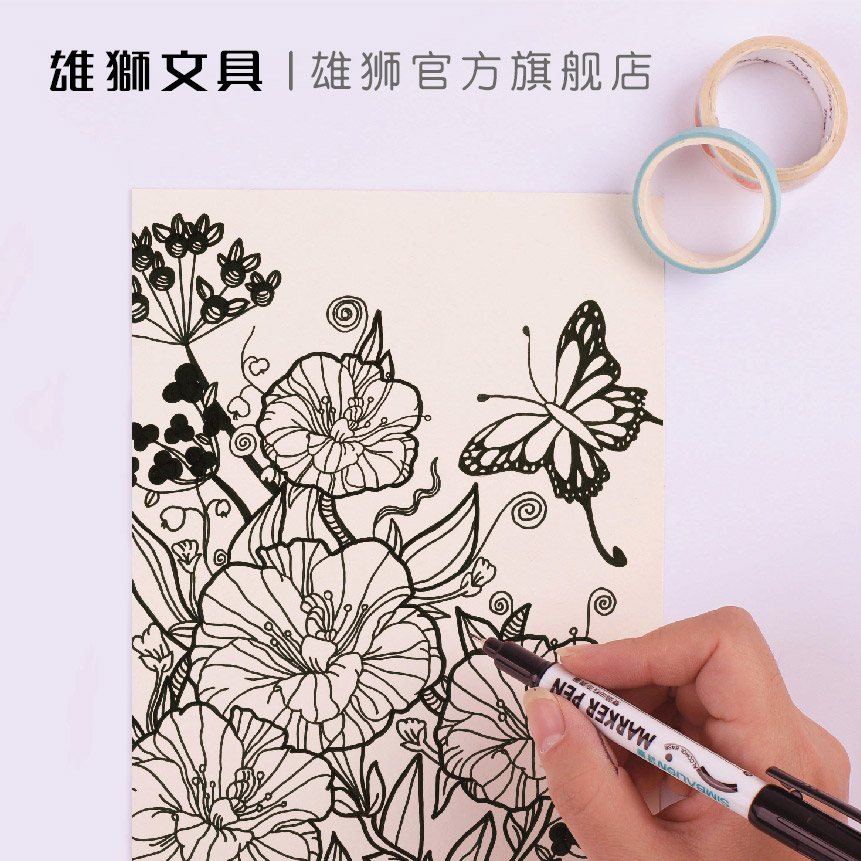 Male lion 680 Double head fine characters Singular Notes Pen conform to ROHS detection standard (alcoholic wire amplitude 0 5mm 1 0mm)