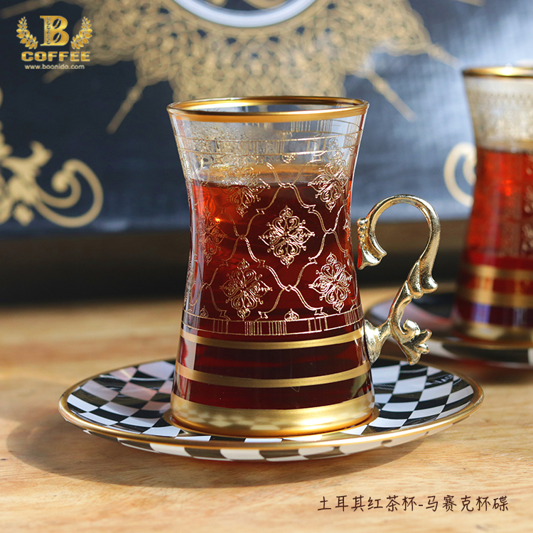 Turkish black tea cup tea set handmade mosaic cup saucer home creative glass cup high temperature resistance 160ml