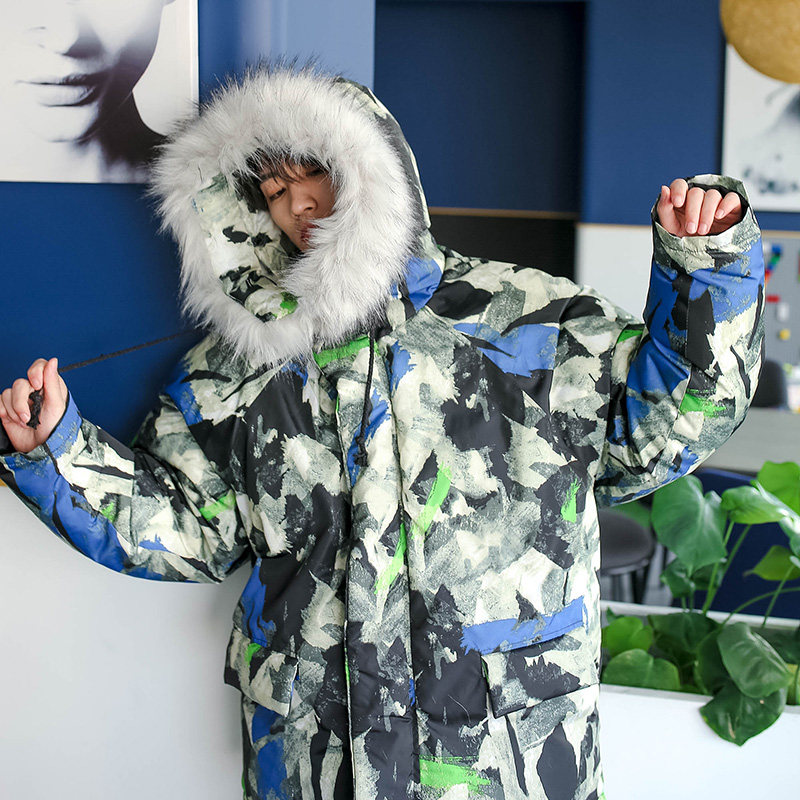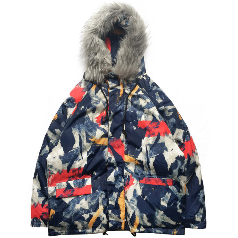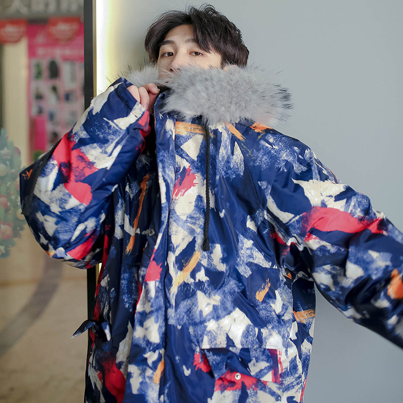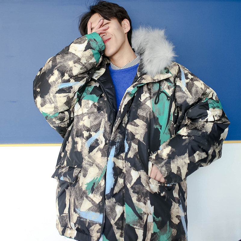 Tide-card camouflages cotton clothes removable woolen collar with cap laying cotton jacket male winter thickened winter dress Korean version trendy loose jacket