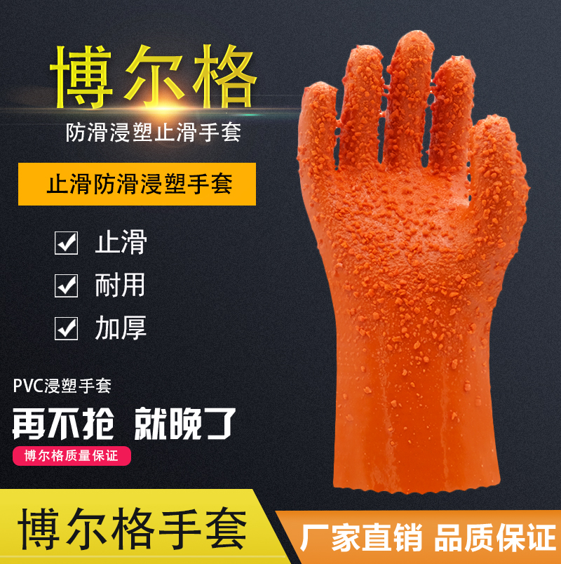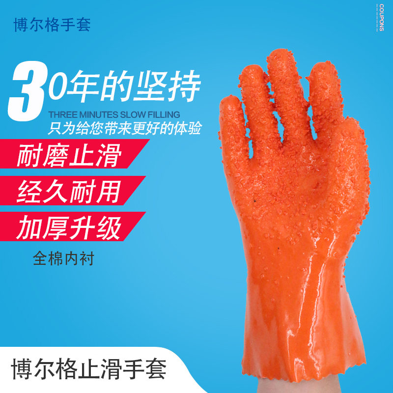 Anti-slip gloves Bolger 608 non-slip plastic-impregnated gloves PVC pure cotton lining particle hemp surface labor insurance