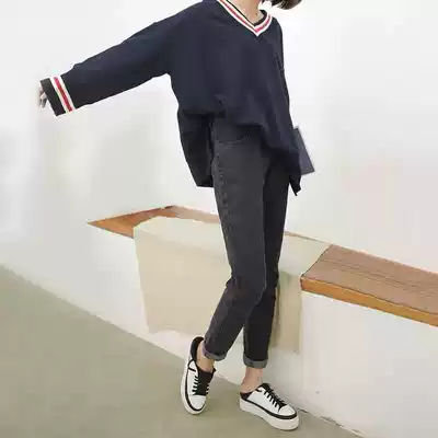 Pregnant women denim Haren pants Spring and Autumn Summer 2020 New Tide mom loose leisure lobe pants wide legs dad pants women