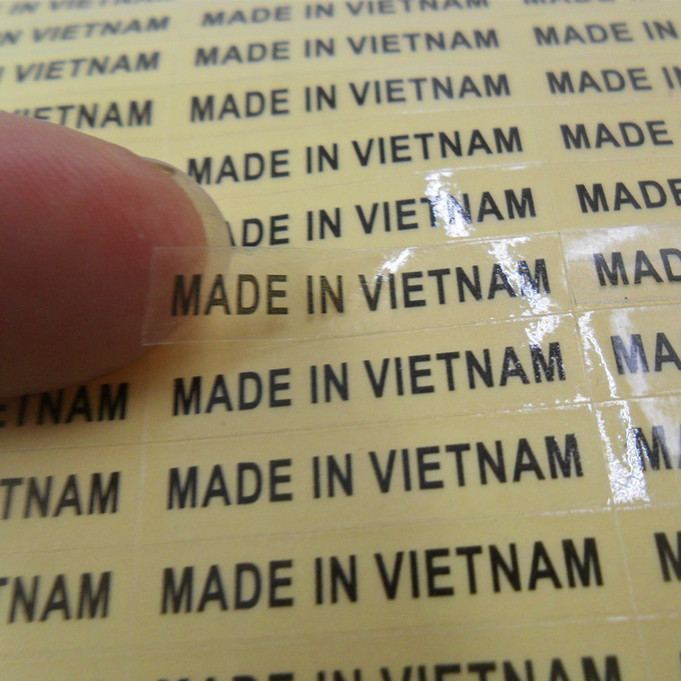 Spot Vietnam manufacturing origin label MEDE IN VIETHAM adhesive transparent adhesive printing