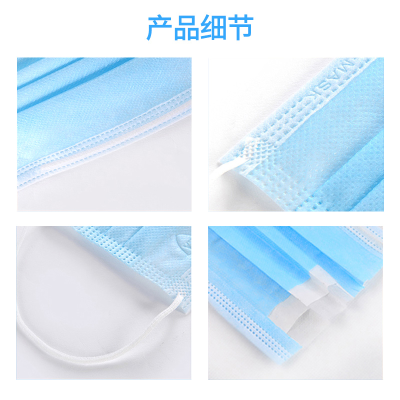 50 pieces(with three layers of meltblown cloth protection)Light blue 50 pieces (with three layers of meltblown cloth protection)White 50 pieces (with three layers of meltblown cloth protection) Pink 50 pieces(with three layers of meltblown cloth protection