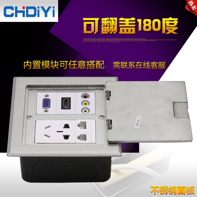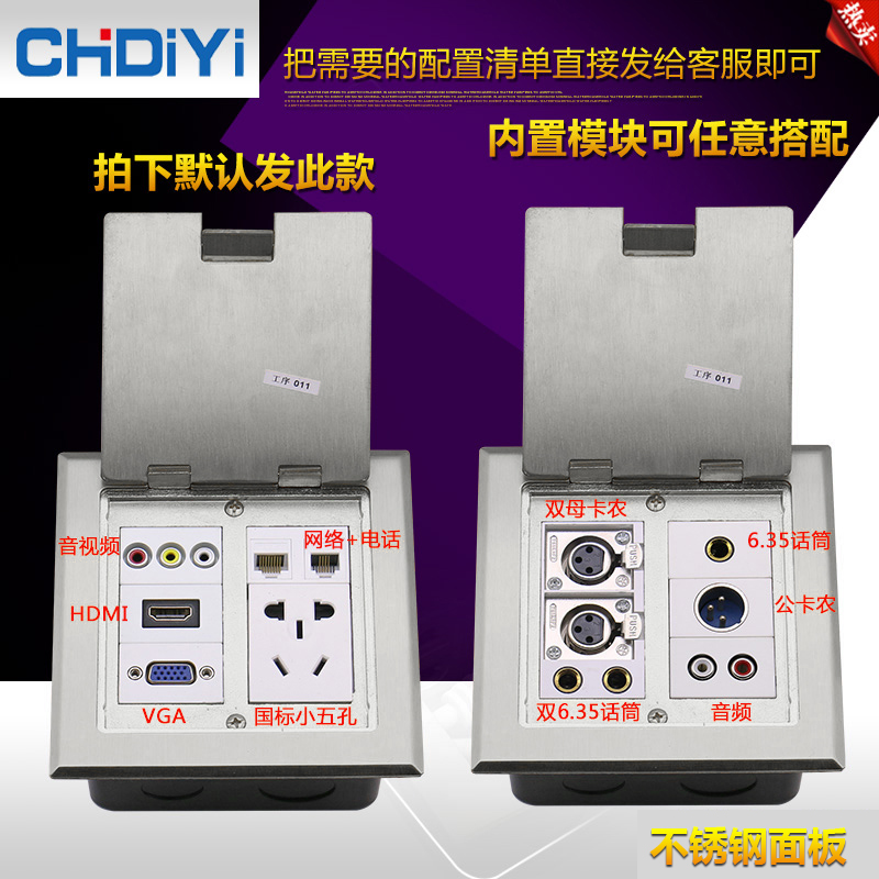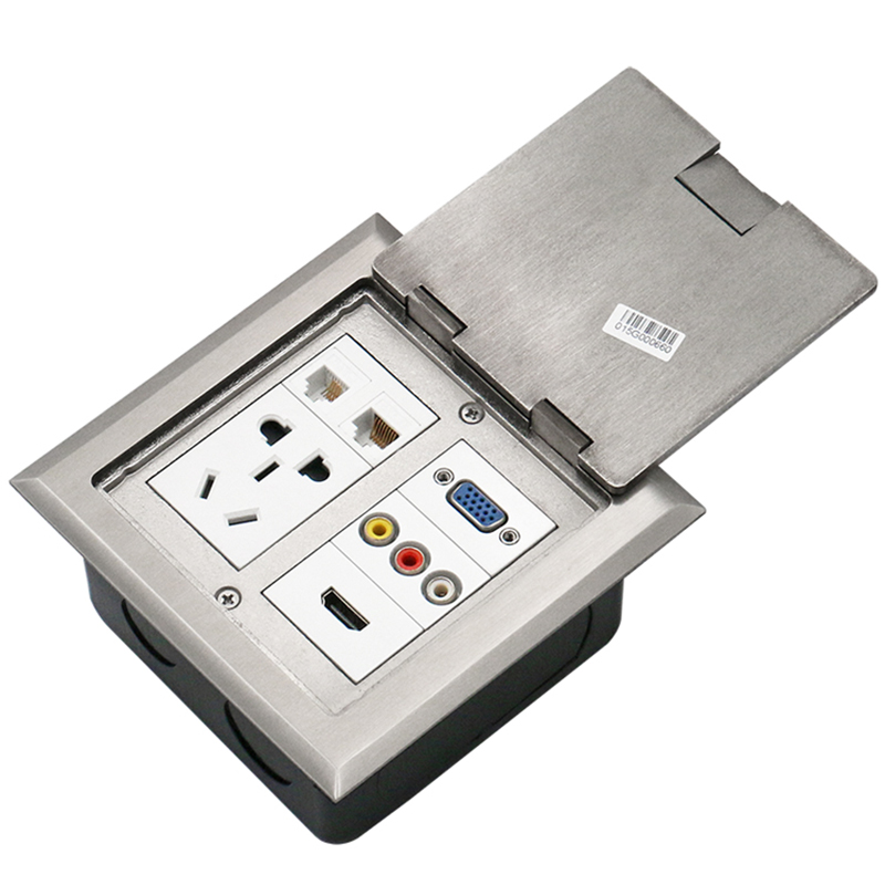 Stainless steel multimedia ground socket waterproof hidden home VGA audio HDMI Canon microphone USB ground socket