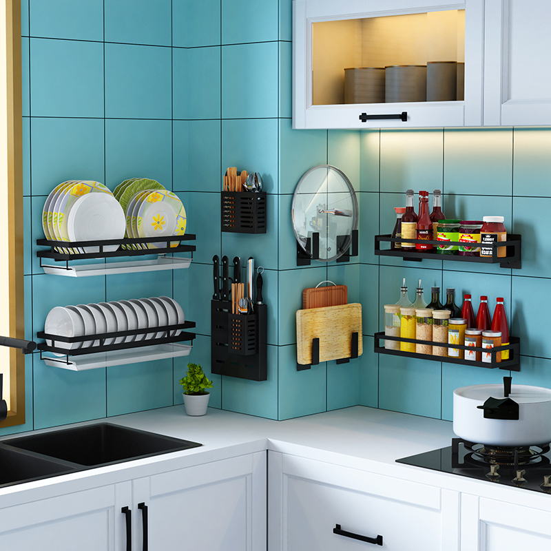 Free Punching Kitchen Shelve Wall-mounted Tool Holder Kitchen Supplies Chopping Board cutting board Shelf Cutter Holder to contain knives Home