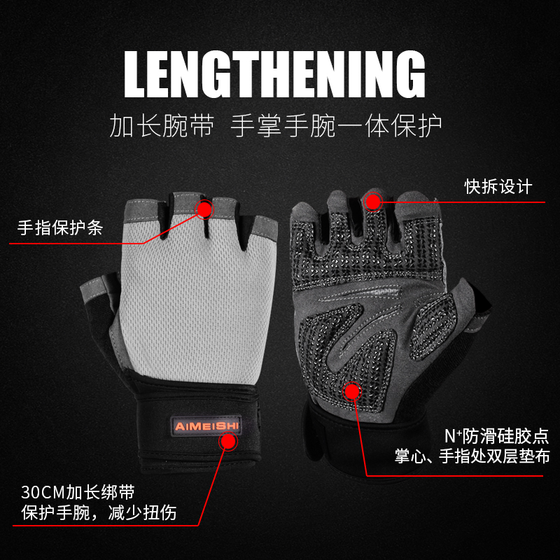 Fitness gloves men and women sports wrist-protection instruments training single-bar exercise protective gear kit leading body to the first half finger anti-slip