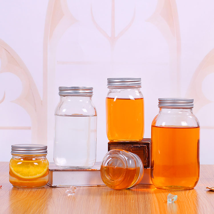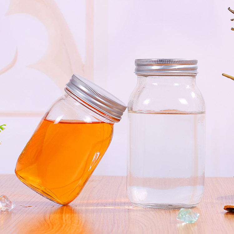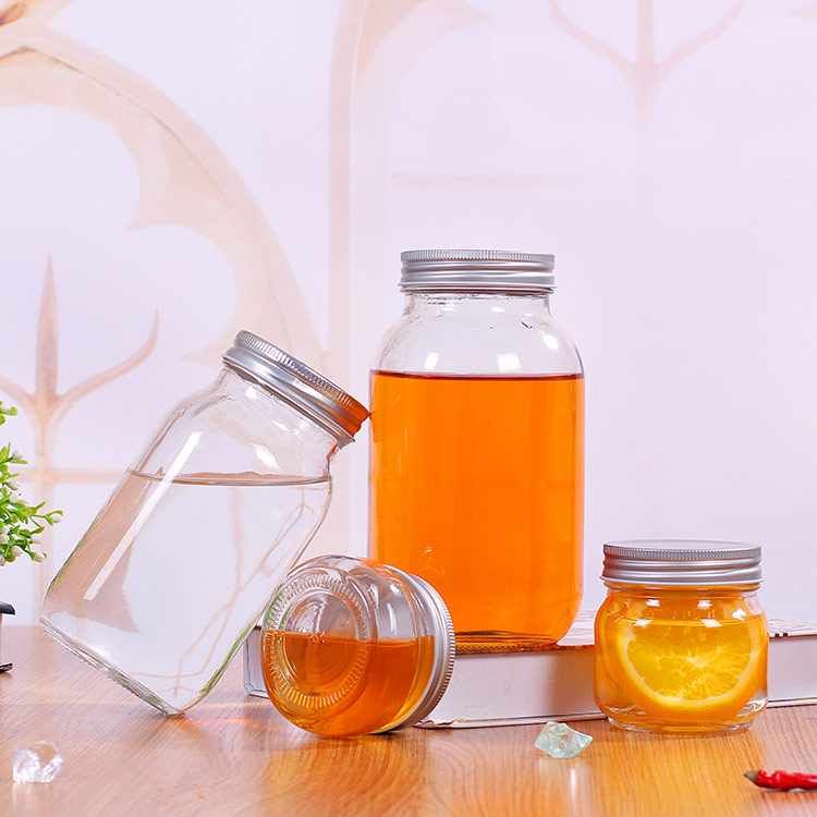 Square round Mason cans Canned Bottle Glass Bottles With Lid Transparent Sealed Glass Storage Tank Commercial Food Package Bottling-Taobao