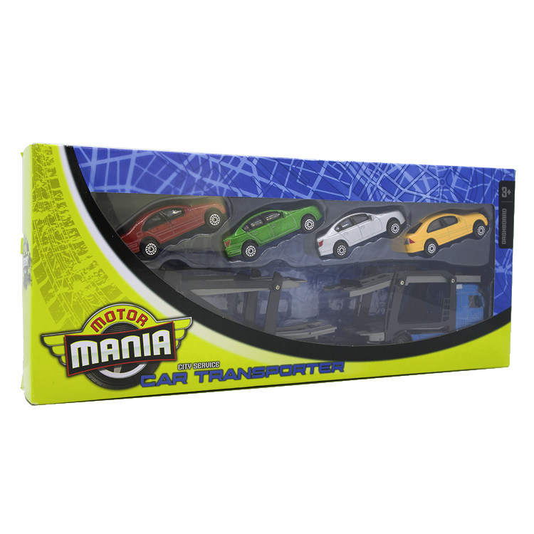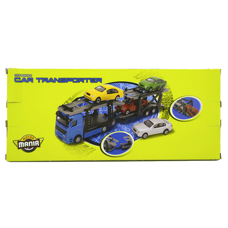 MOTOR MANIA double-layer loading 4 trolley flat mop head Transport tow truck alloy children's toy car