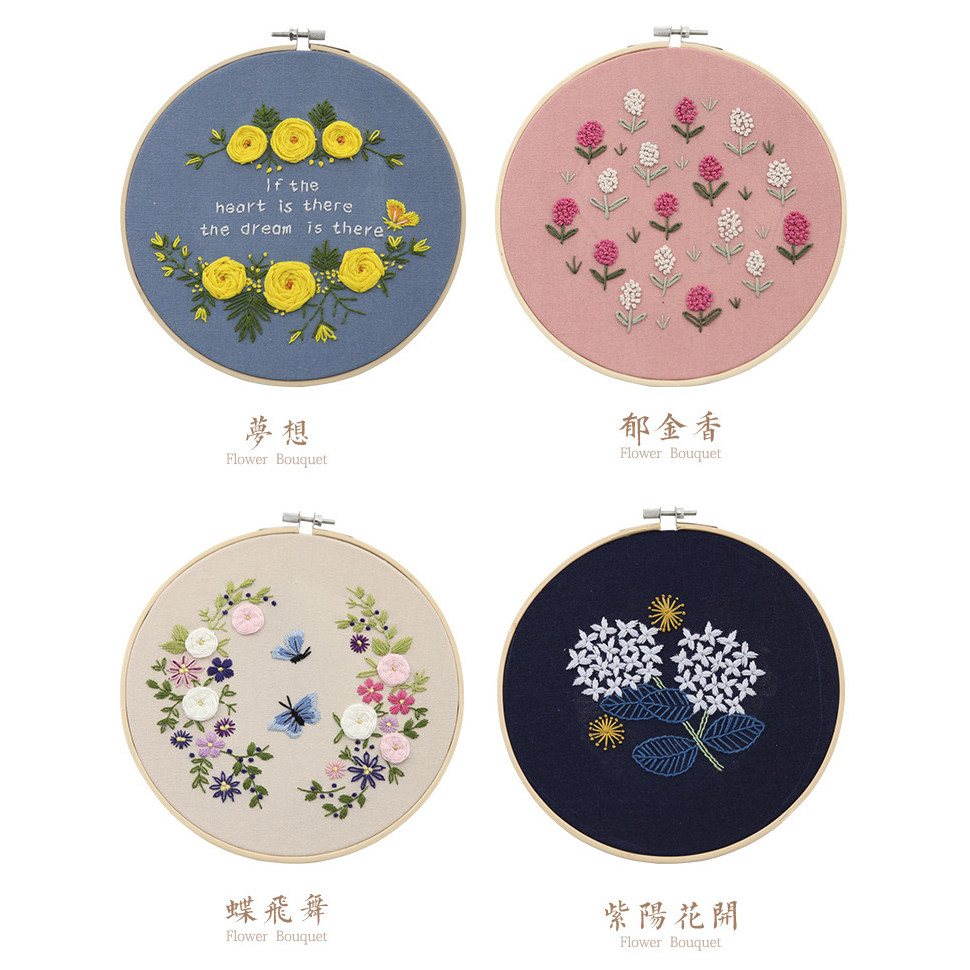Embroidery Diy kit student girl handmade creative making toy cloth art material bag three-dimensional floral embroidery hanging picture