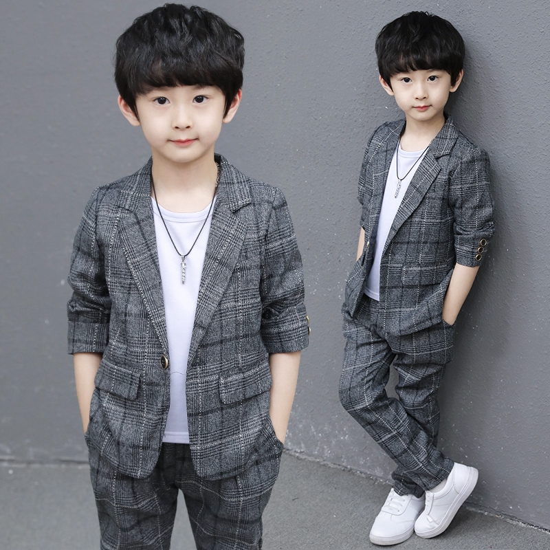 Boy suit spring and autumn suit 2021 new spring dress foreign school children handsome boy Korean version of children's clothing suit tide