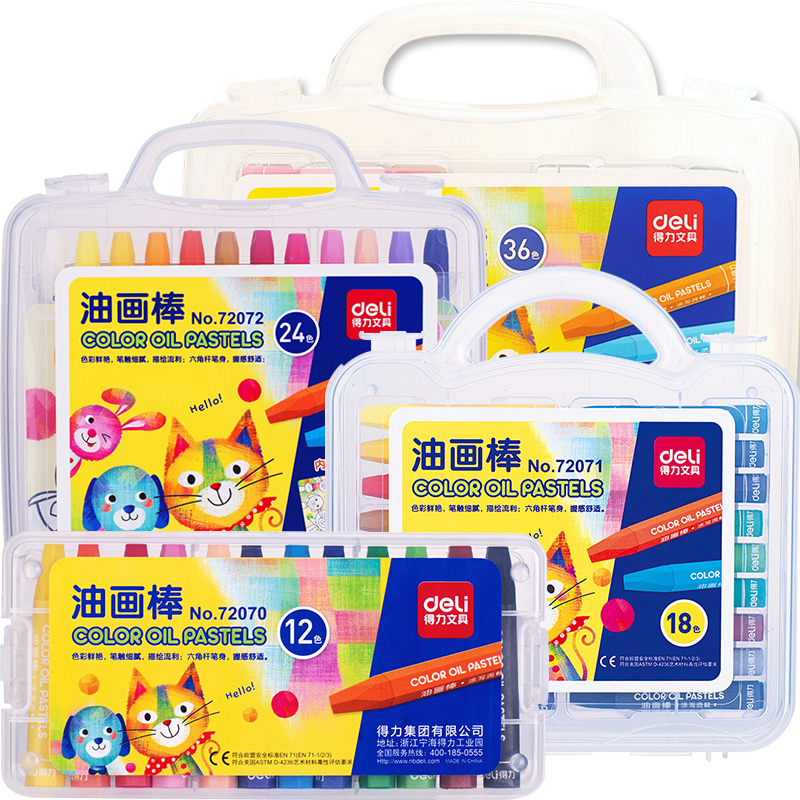Deli children's oil painting stick, triangle pen holder, student's brush, color pen, 12 colors, 18 colors, 24 colors, 36 colors, kindergarten baby crayon, hand-painted color painting, easy to erase oil painting stick, oil painting stick, box, art painting material