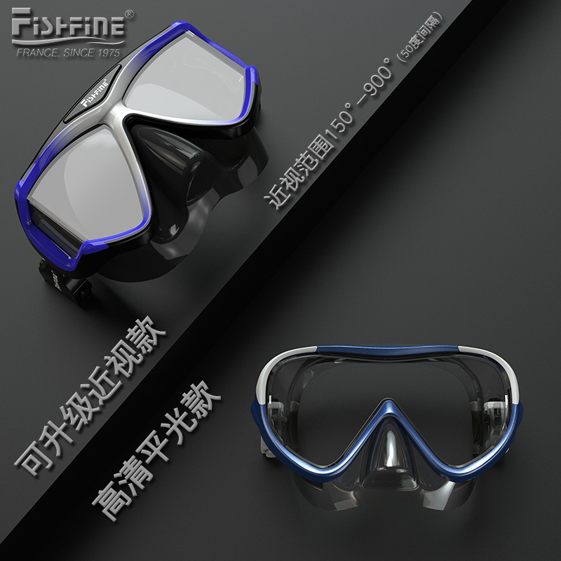 French diving goggles anti-fog snorkeling three-treasure mirror cover myopia deep diving nose protection integrated large frame swimming glasses equipment