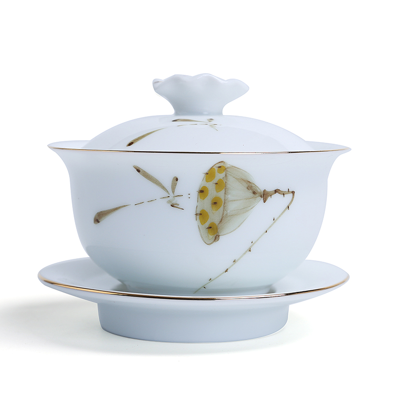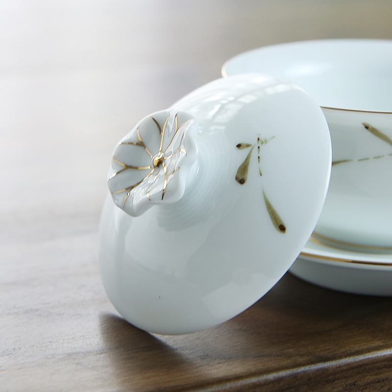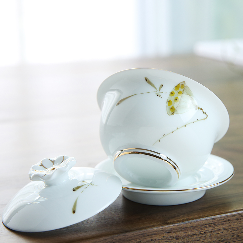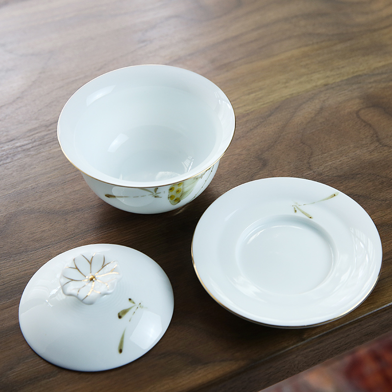 Gaiwan teacup ceramic kung fu tea set tea maker hand-painted thin tire three-talented bowl household toast teacup trumpet single