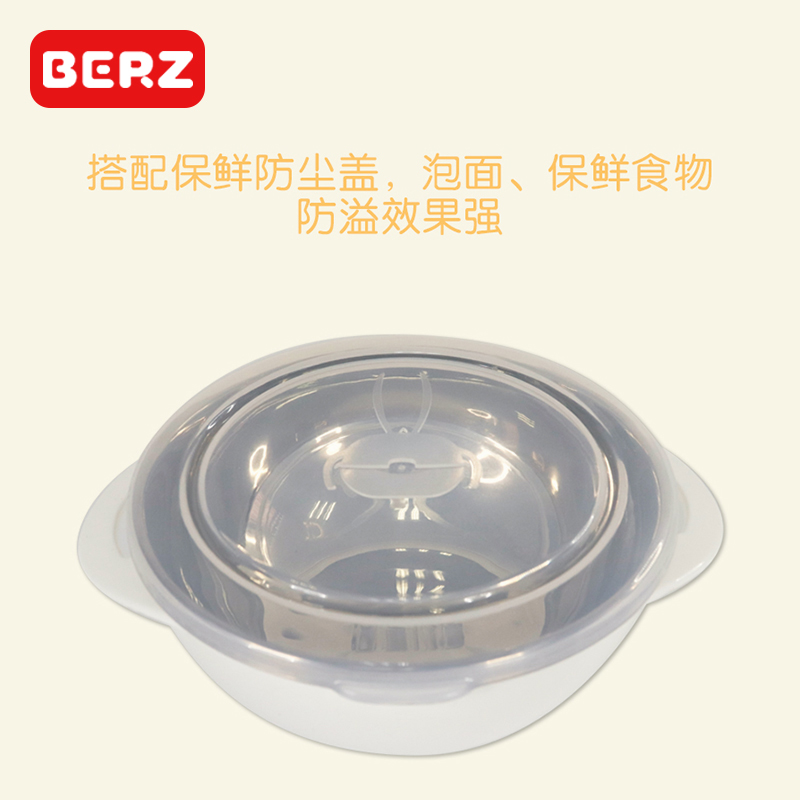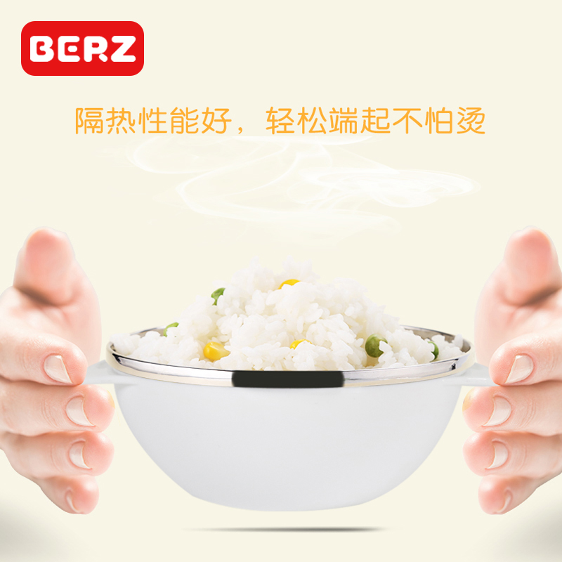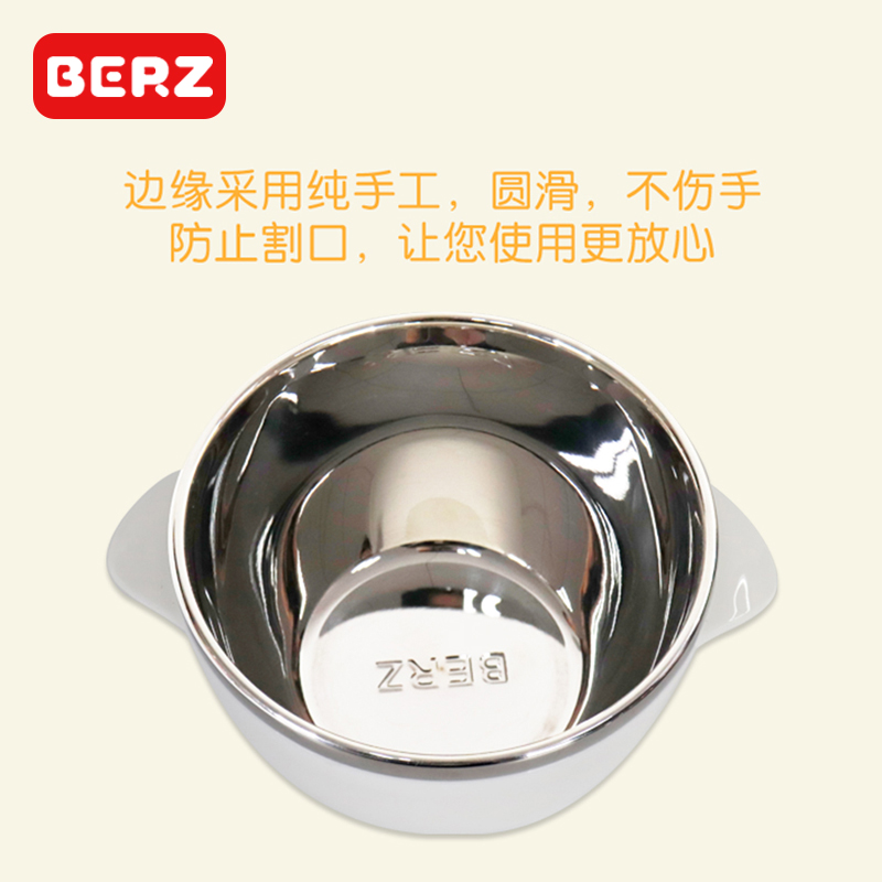 BERZ baby bowl spoon set baby sucker bowl portable baby six months 304 stainless steel children's tableware