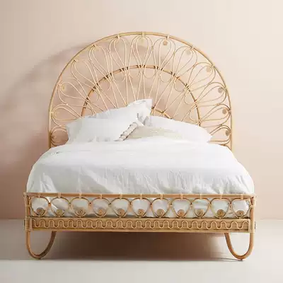 Greentengda ins Rattan bed Creative bedroom Rattan bed and Breakfast Inn Double bed Master bedroom Japanese rattan art bed