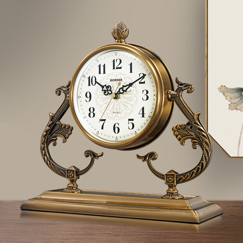 Seat clock Living room Home Desktop Block Clock Eurostyle Pendulum Clock Metal Copper Plated Clock Table Clock Pendulum large number muted