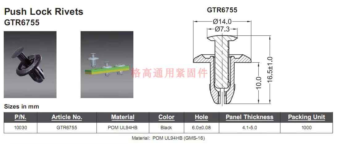 Environmentally friendly black push-in type rivet GTR6755 car plastic puffy expansion buckle mounting hole 6 plate thickness 4 1-5M