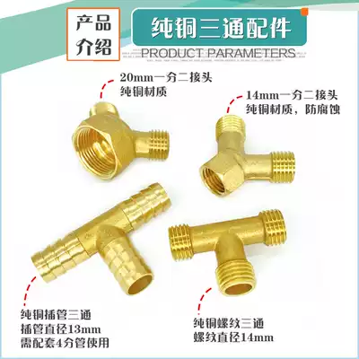 Pure copper thread tee pure copper cannula tee plastic cannula tee tee 14mm one-point two joint 20mm one tap two connector two external wire ball valve switch one inner one outer ball valve switch 14mm straight joint pipe connection