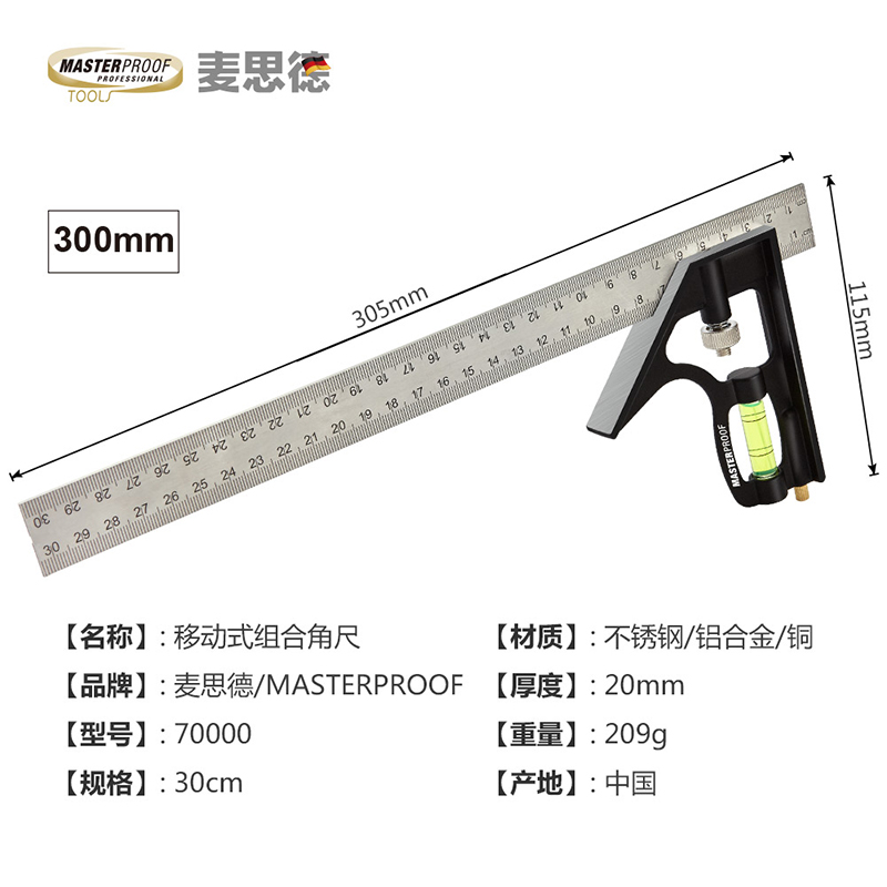 McSade active angle ruler 90 degrees stainless steel multifunction horizontal right angle ruler Wood angle ruler 45 Composition angle