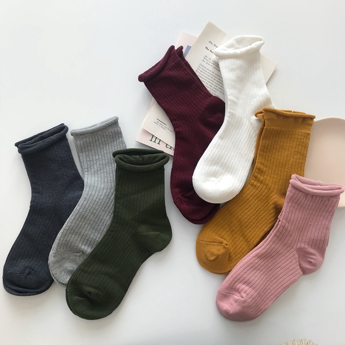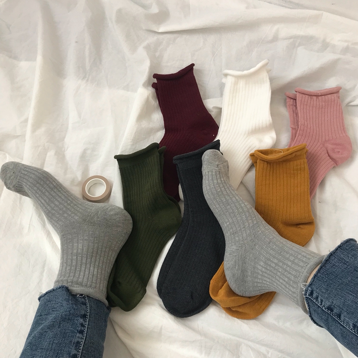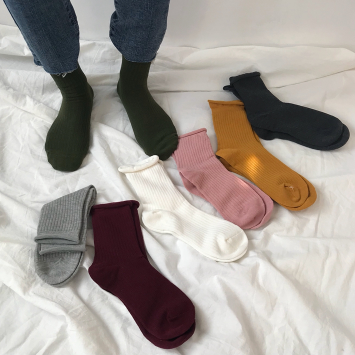 Rolled edge socks-Dark green rolled edge socks-Lotus powder rolled edge socks-Wine red rolled edge socks-White rolled edge socks-Turmeric rolled edge socks-light gray rolled edge socks-Black rolled edge socks-Dark gray