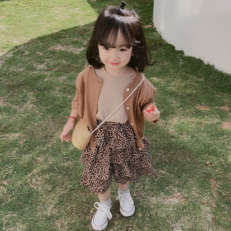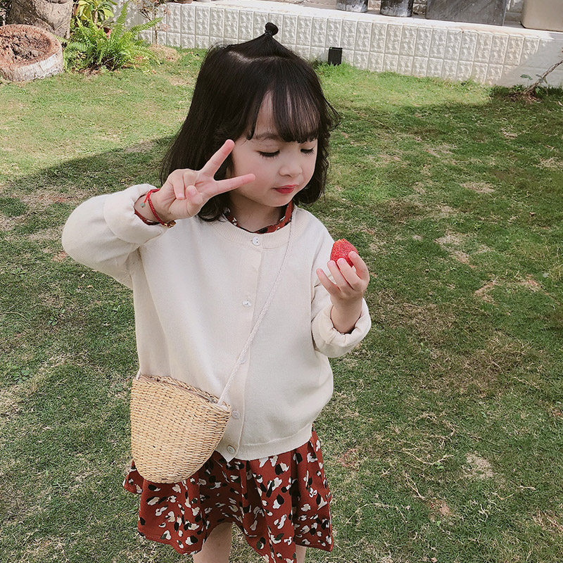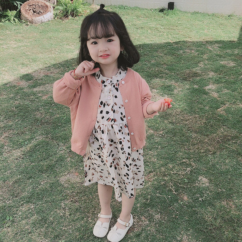 2021 Girls ' spring new all-match Korean children's knitted cardigan jacket Female baby Foreign school sweater
