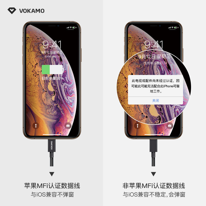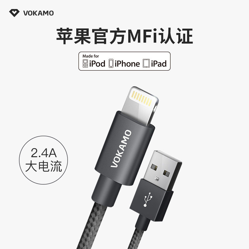 VOKAMO data cable for Apple x xr mobile phone fast charging flash charging cable MFi certified iPad extended braided fast power cable iPhone11 Pro XsM