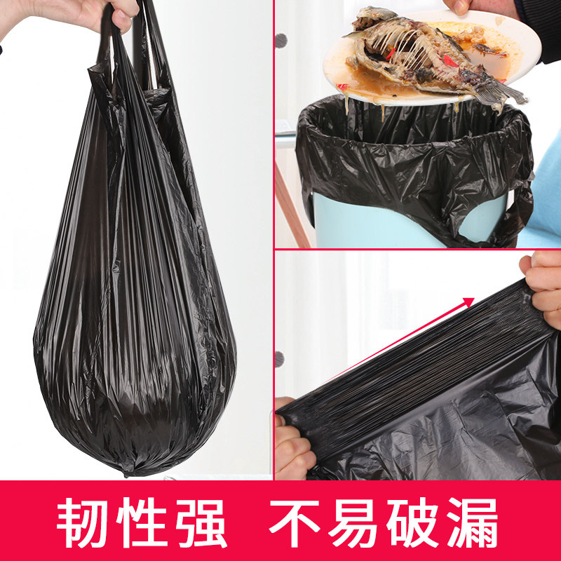 Black thickened portable garbage bag Medium large household affordable kitchen vest garbage bucket plastic bag