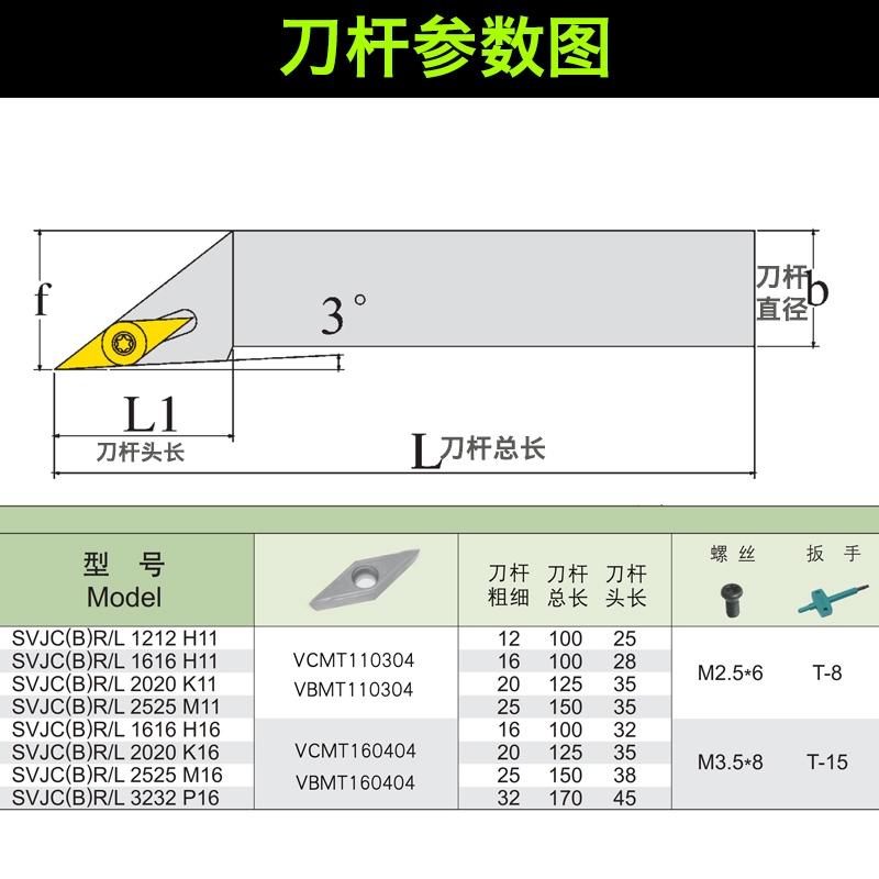 SVJCR1616H16 (16 square) positive knife SVJCR2020K16 (20 square) positive knife SVJCR2525M16 (25 square) positive knife SVJBR1616H16 (16 square) positive knife SVJBR2020K16 (20 square) positive knife SVJBR2525M16 (25 square) front knife SVJBR3232P16 (32 square) positive knife SVJBL2020K16 (20 square) reverse knife SVJBL2525M16 (25 square) reverse knife SVJCL2020K16 (20 square) reverse knife SVJBR2020K11 (20 square). ) positive knife trumpet