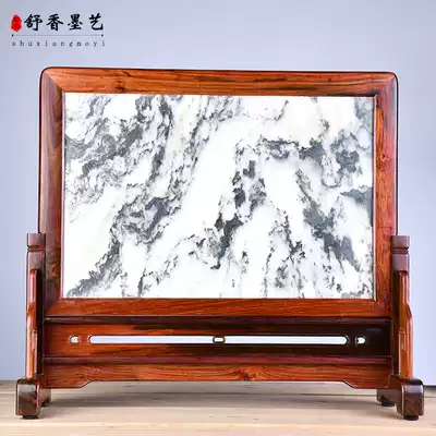 Big red acid branch inlaid marble table screen retro Chinese mahogany crafts solid wood interstitial screen living room wood carving ornaments