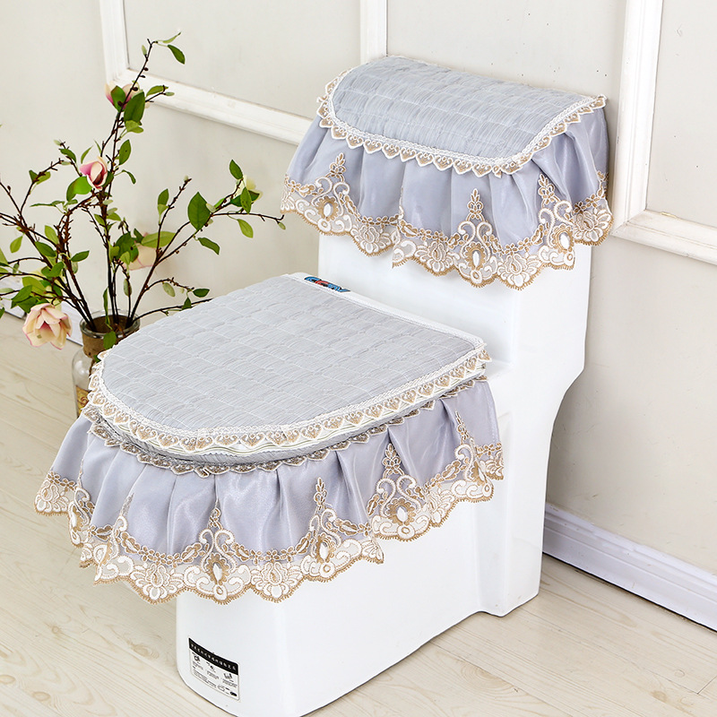 Upscale European-style toilet Three sets of cloth art lace sitting toilet cover thickened universal cushion toilet cushion pull bracelet