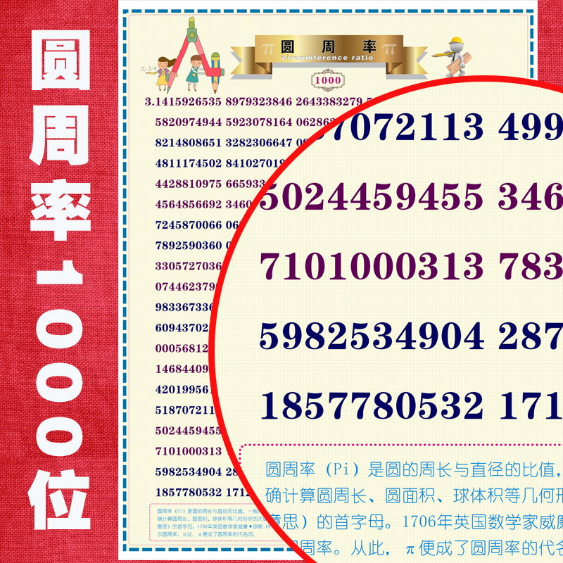 Pi rate table mathematical geometry calculation memory training intelligence development poster wall chart pie π constant 3 141