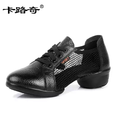 Kalucci dance shoes women's real leather autumn new dance shoes soft sole mesh modern jazz sailor square dance shoes