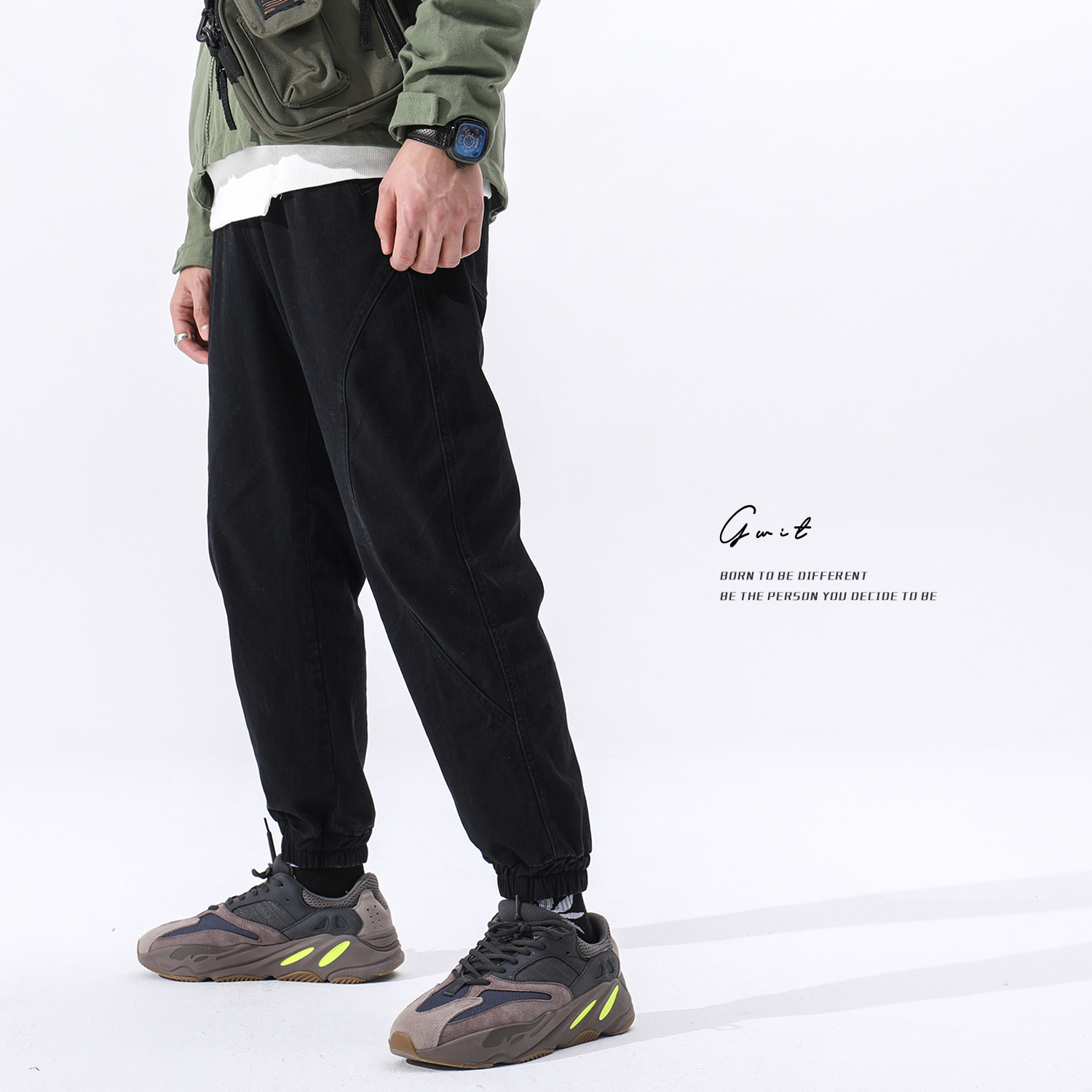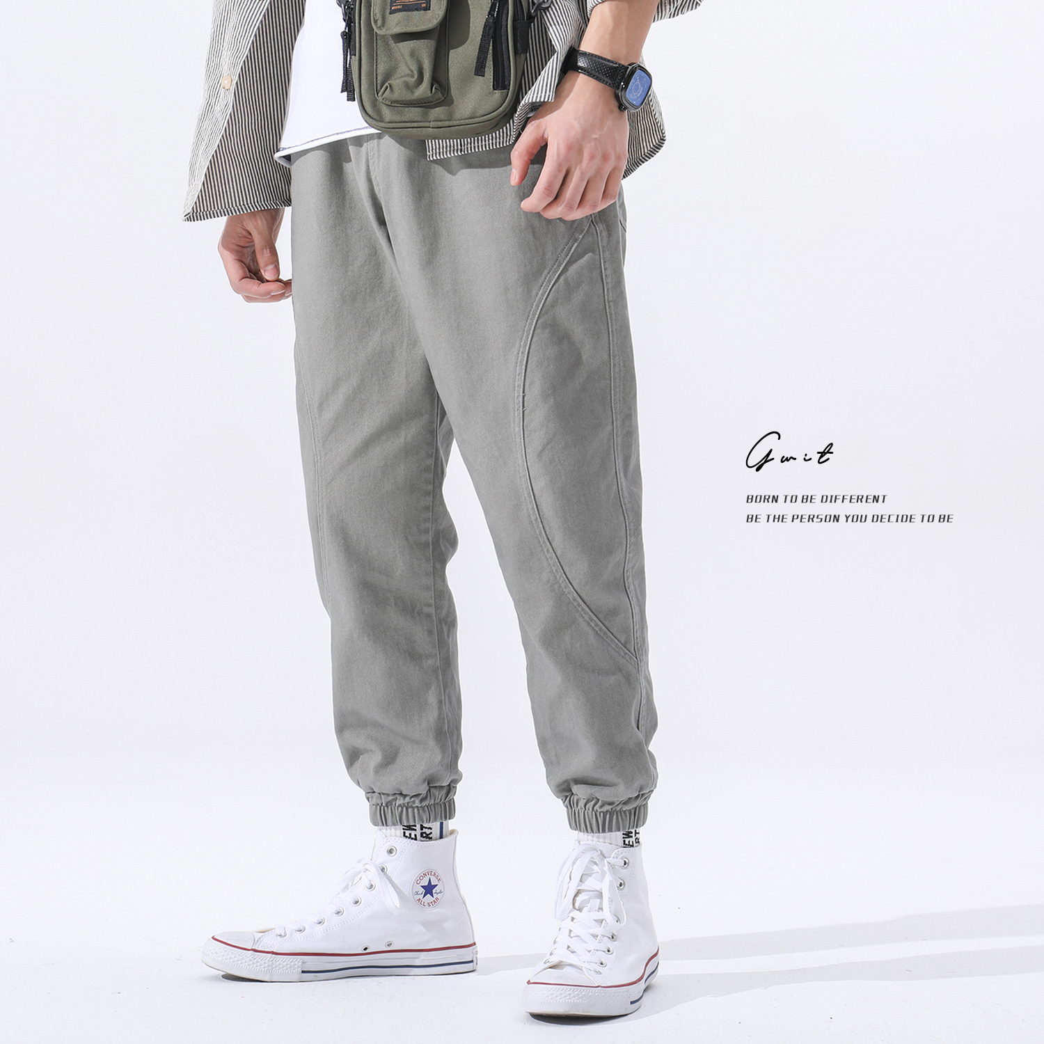 GWIT (machete)spring and autumn new American casual tie leg overalls men loose and wild small feet long pants