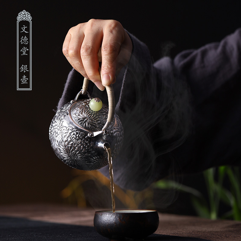 Wendetang Hetian Jade Liang Xishi 300ml silver pot handmade sterling silver 999 chrysanthemum teapot tea set