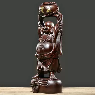 Ebony wood carving Maitreya Buddha ornaments cornucopia laughing Buddha shop company office real mahogany business opening gifts