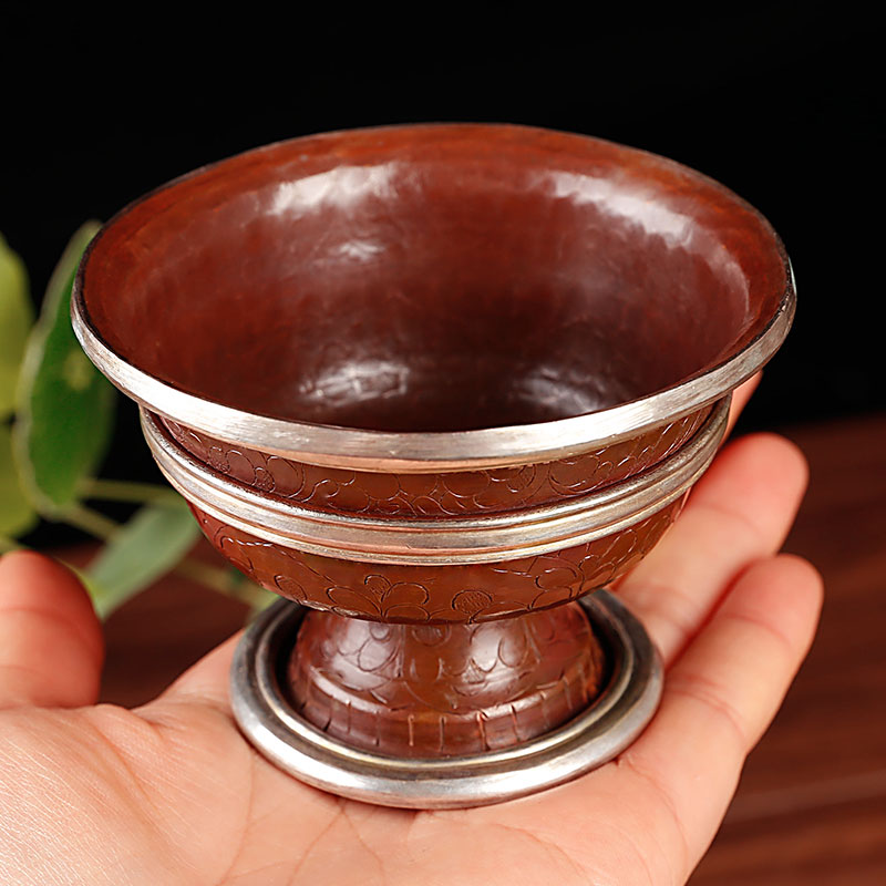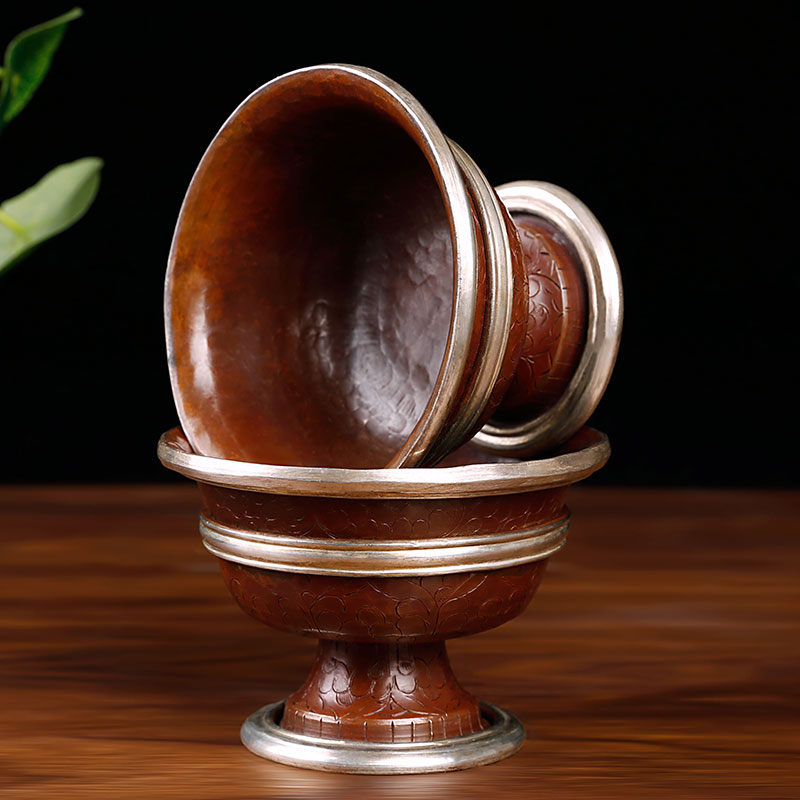 Nepalese copper pure copper bowl water cup high feet purified water cup hand carved flower large and medium