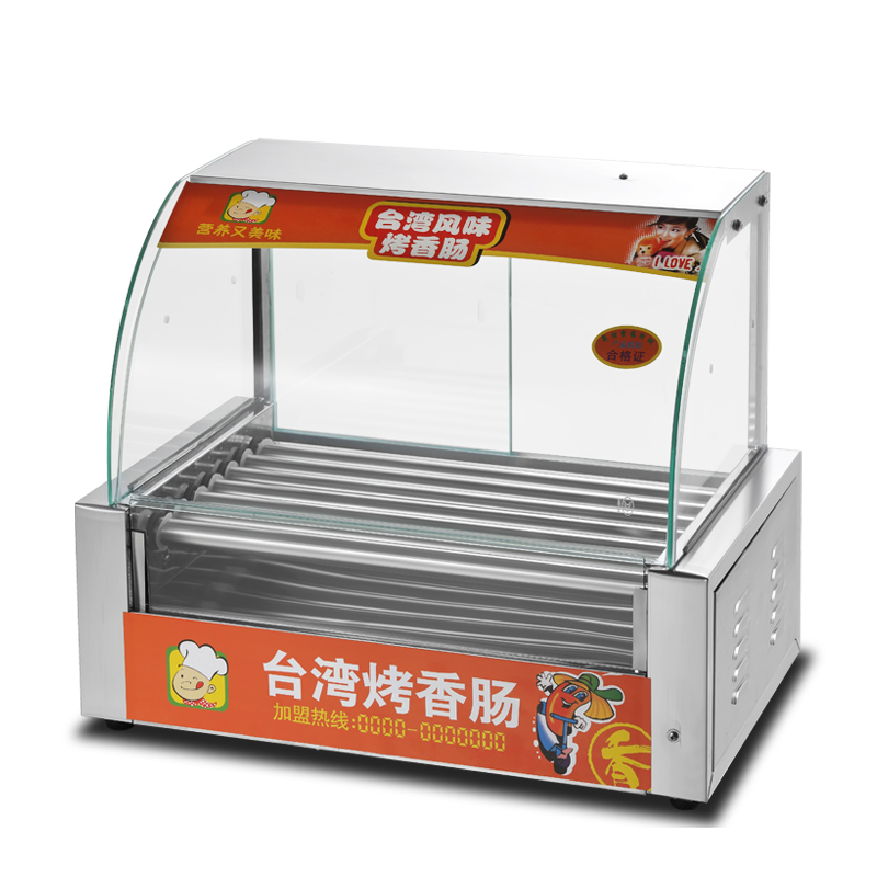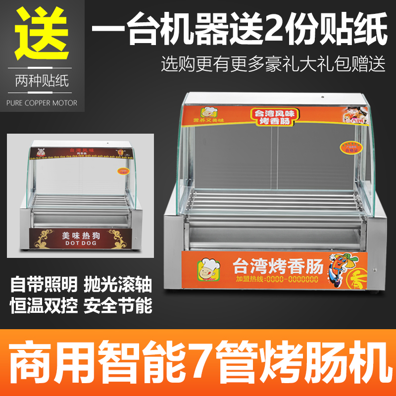 Commercial 7-tube grilled sausage machine desktop hot dog machine double temperature control stainless steel seven-tube grilled sausage machine with light and door plus 25