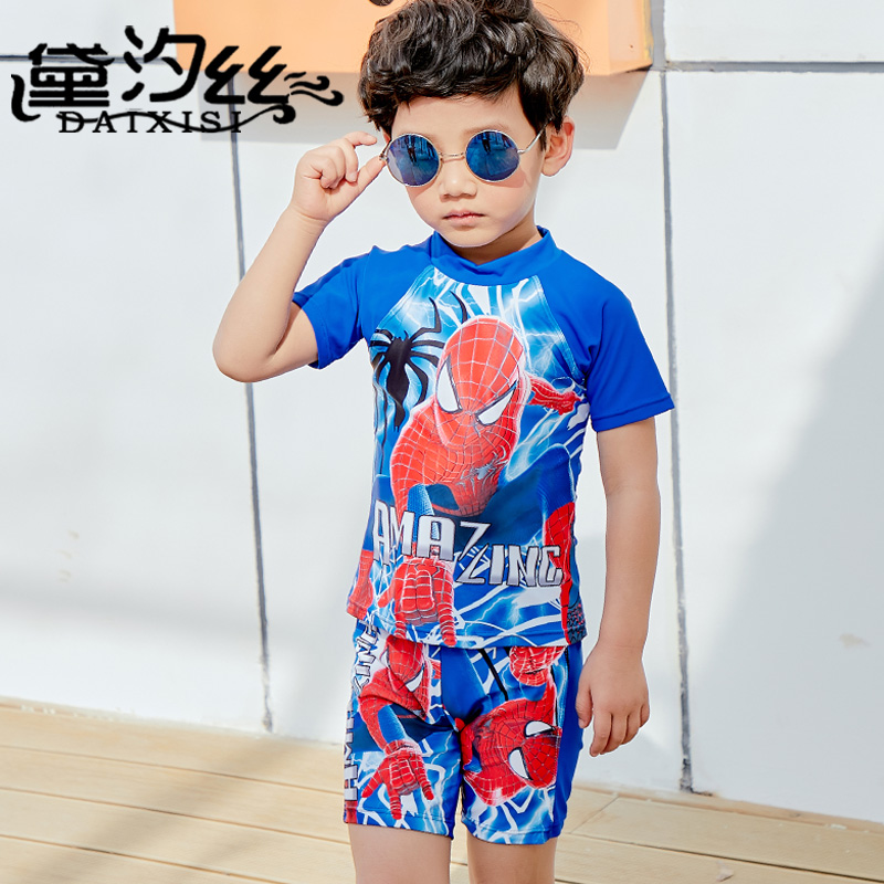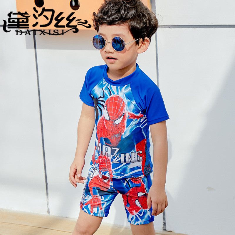 New children swimsuit male baby fashion cute cartoon boy two-piece flat angle swimsuit