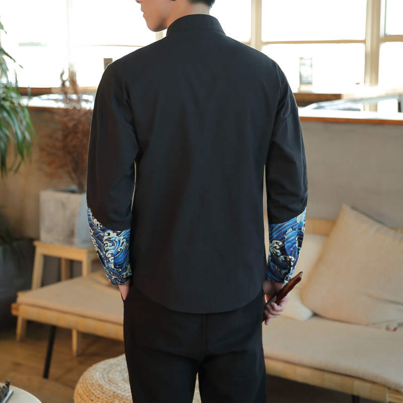Chinese wind disc buckle men's long sleeve shirt Chinese style Tang suit upright collar shirt retro style with large size for men's casual blouse