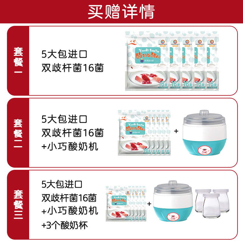 Package One 5 big bag 16 bacteria co-50g bacteria powder package II 5 big bag 16 bacteria send small yogurt machine package Three 5 big bag 16 bacteria small machine to send 3 yoghurt cups