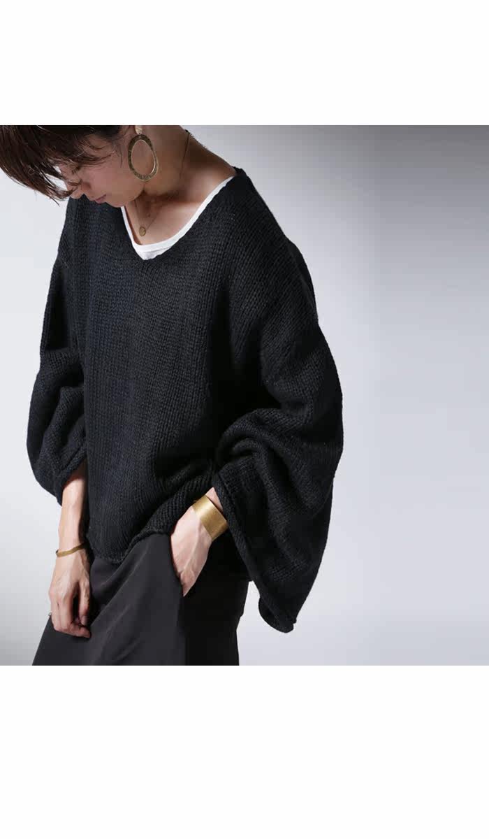 Limited Original Design Spring Loose Knit Wool Knit Sweater Big Sleeve Tops