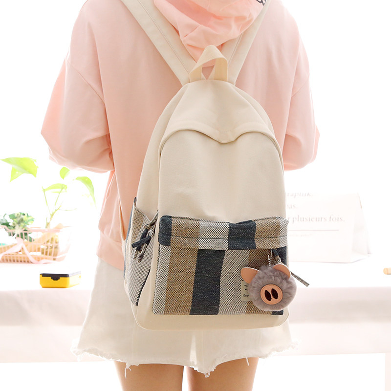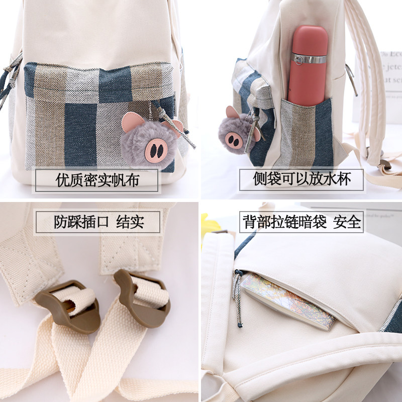 NR Sen department contrast color small fresh canvas school bag female Korean version of simple high school backpack Female shoulder college student shoulder bag