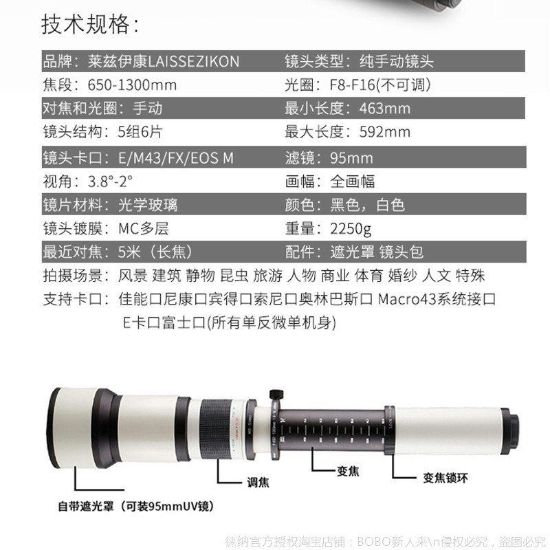 Leeds Ikom Brand Super Long Charred Far Zoom 650-1300 Single Eye Micro Single Eye Camera Lens Upgrade 2600MM