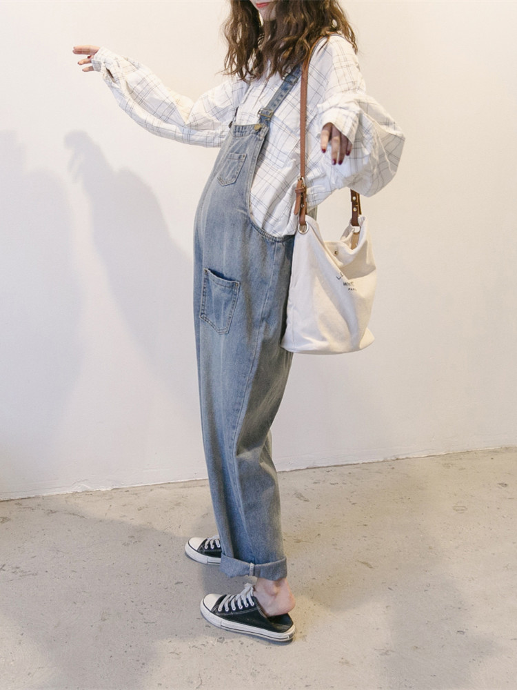Pregnant women spring fashion new outerwear casual pants loose Korean version age-reducing Korean version denim overalls trendy mother trousers